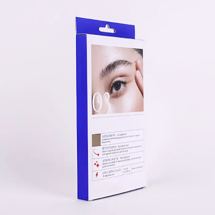 Dessa tryckta Hang Tab-boxar designades och producerades av Doyoupacks för ett Market Beauty Brand, som har en stark närvaro i massmarknadshandelskanaler. När vår fabrik först designade förpackningsstrukturen, övervägde vi dess försäljningsscenarier, och produkten inuti är en penna för ögonbryn. De anpassade hängande butikslådorna är det mest lämpliga urvalet, eftersom det är lämpligt att visas upphängt från en krok i detaljhandelskedjor, inklusive apotek och skönhetsfokuserade butiker. Dessutom gör den stabila bärförmågan och designen med öppning med dubbla ändar den idealisk för förpackning av lätta uppsättningar med flera artiklar som t.ex. ögonbrynspennor.